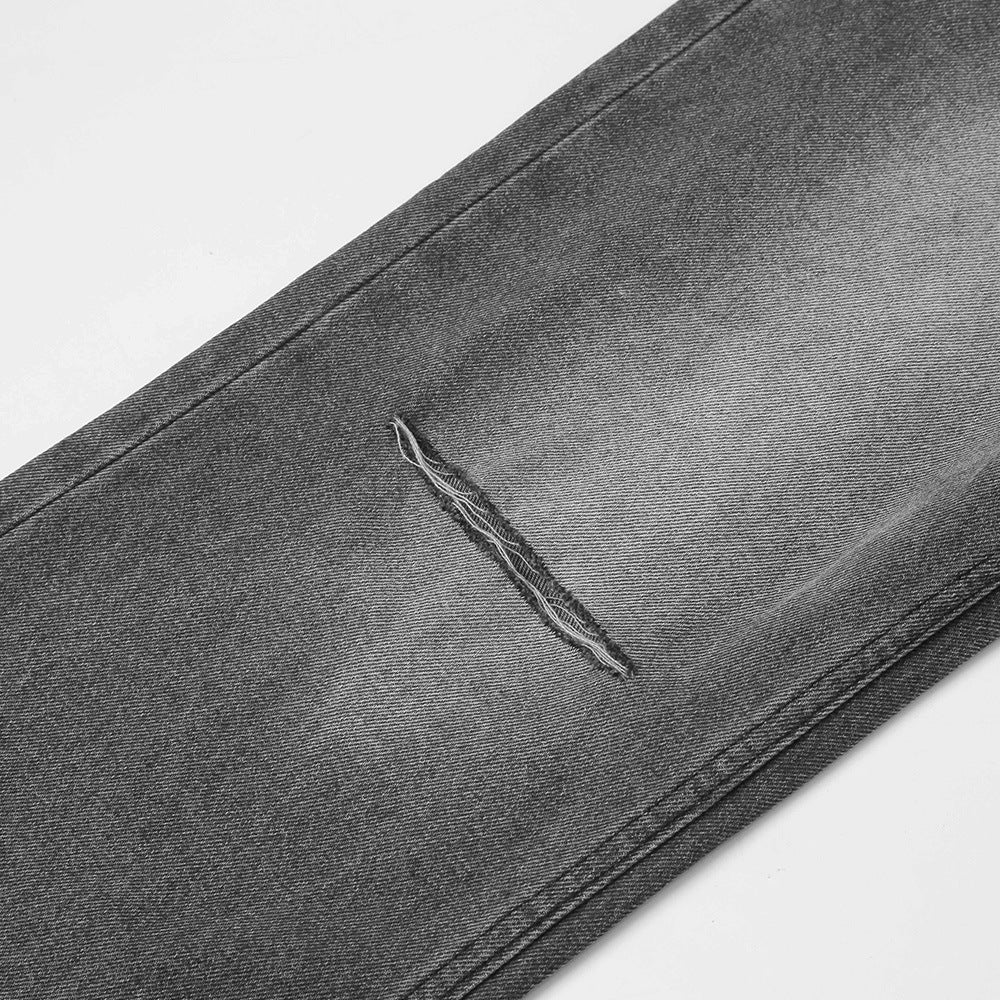 American-style White Ripped Straight Jeans