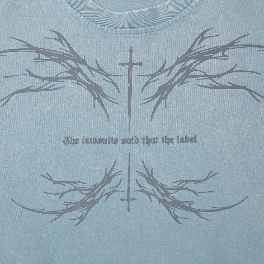 Color-contrasting Pattern Printed Short Sleeved T-shirt
